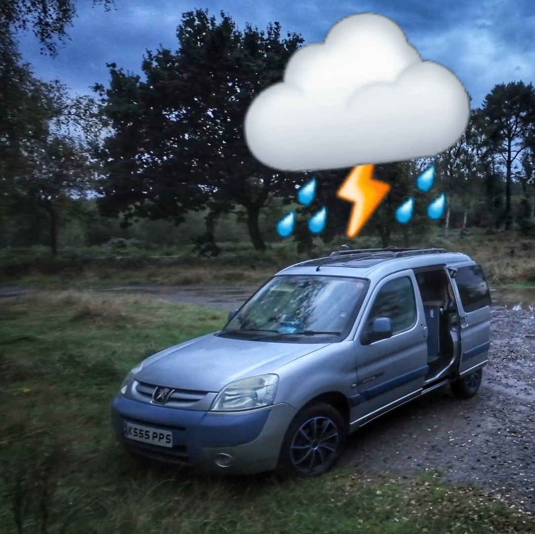 Night out in my peugeot partner micro camper, just to be out in a thunderstorm to listen to the rain, see how i go on in the video