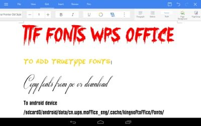 But there is a way to manually transfer truetype fonts to use within wps office. First either download the fonts you require or copy them from your windows pc to either your devices memory card or put them into cloud storage like dropbox or Google drive etc. Then using a file manager app on your device, I would recommend es file manager then copy to the location of the wps font directory which is: