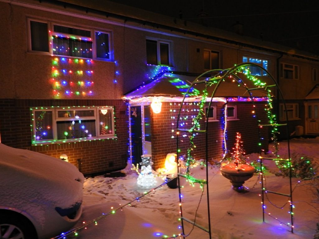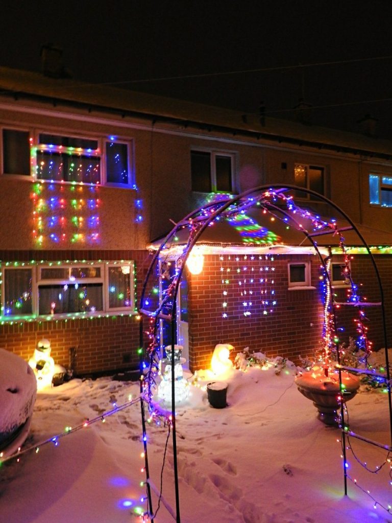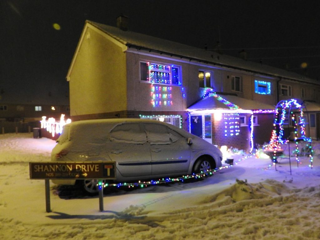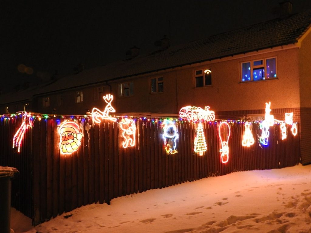 We had all the decorations up by early Saturday afternoon so all I had to do was the wording into Junction boxes etc, which was pretty easy though was pretty cold so did get numb fingers 🙂 though when they was switched on it was worth it even the pain that I was in. And then on the Saturday night and all day Sunday the snow came down thick so that night did get the photos that I have wanted.