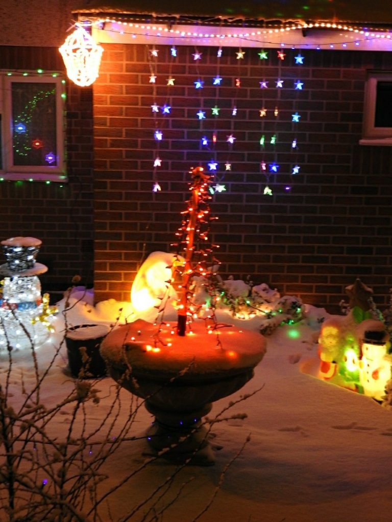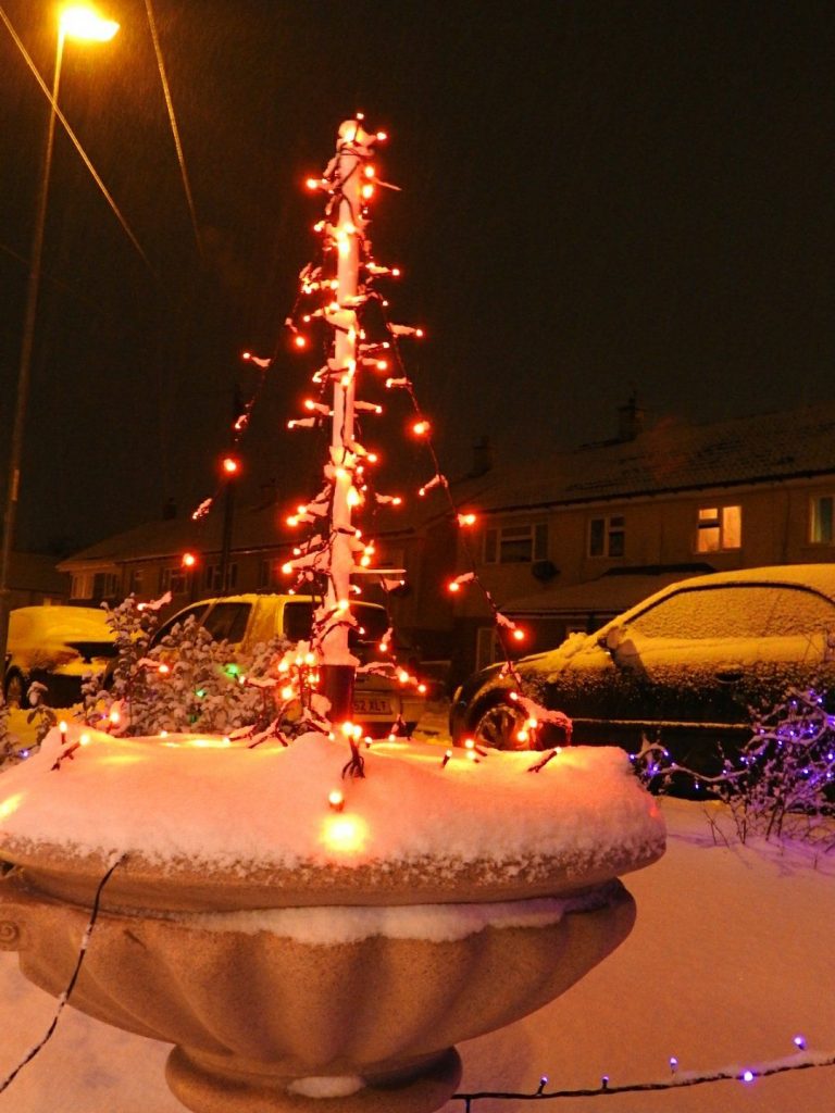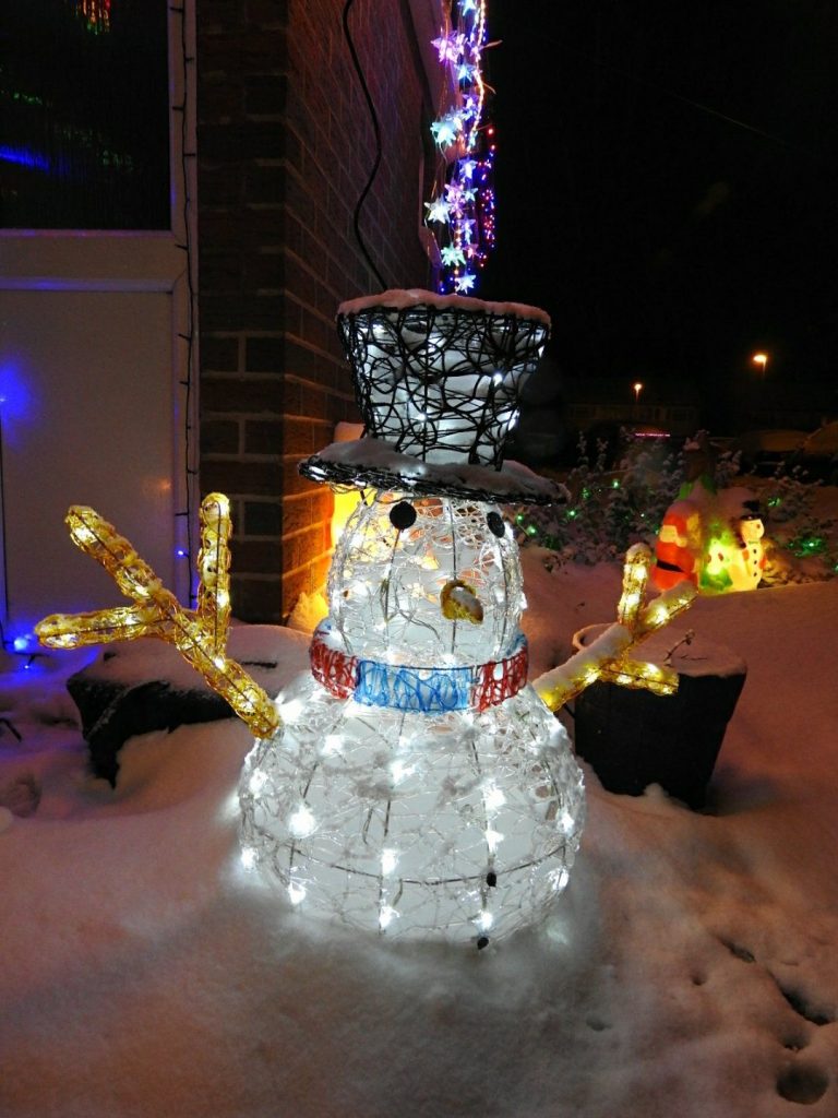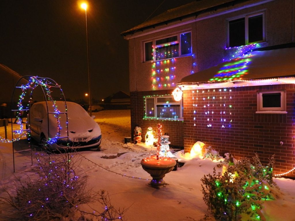 We had all the decorations up by early Saturday afternoon so all I had to do was the wording into Junction boxes etc, which was pretty easy though was pretty cold so did get numb fingers 🙂 though when they was switched on it was worth it even the pain that I was in. And then on the Saturday night and all day Sunday the snow came down thick so that night did get the photos that I have wanted.