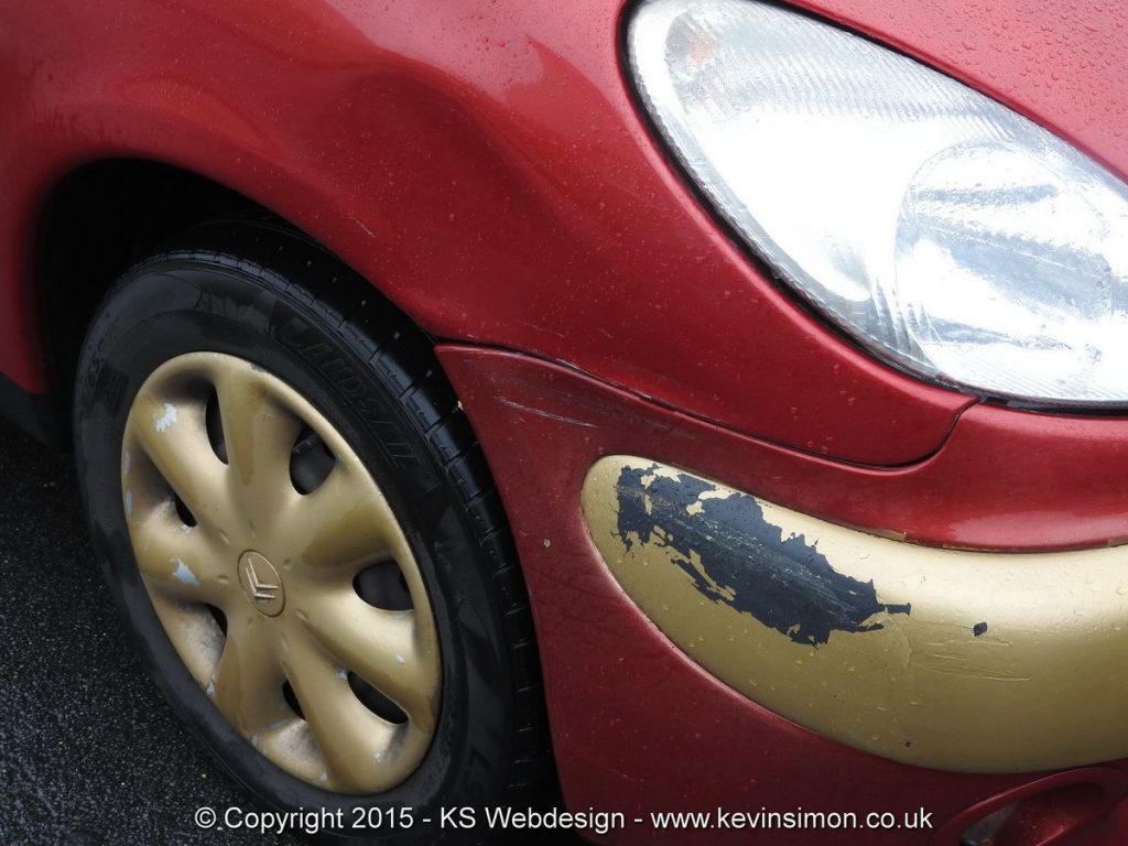 I thought I would share what has just happened to me within last two days. Today when getting into my car I noticed the front of the car had a large dent in it, the dent is at least 10″ across and had pushed in the side panel and bumper a good few inches, and a few gouge in the panel.