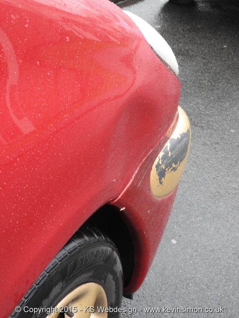 So this seems to have happened between Wednesday 9th December & Thursday 10th of December. Normally when this happens you either exchange insurance details or no real damage you let it go. But in this case I don’t know who has hit the car as not even a note on the car or the letterbox. As most people around the Brownhills area know of my car as kind of a one of a kind with custom gold trim bumpers and wheel trims, most people say it’s the ironman car. Now the car that has hit mine would have had either a dent or marks of both red and gold paint on it, so they will know there was damage.