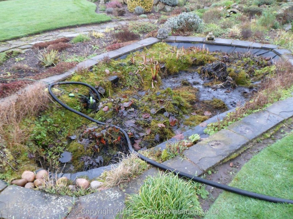 As the temperatures at the beginning of the year are too cold to do full service / clean out of fish ponds with fish. This is because while temperatures on a normal day are below about 4 degrees Celsius, fish are more down at the bottom of your pond this is because the temperature is warmer the deeper the water and over the winter period they are more dormant. So if doing a full service when temperatures are low the shock of taking the fish out into temporary vats isn’t that good for their health. But with this pond as there are no fish, as unfortunately over the years the customer has suffered fish loss because of herons from a local heron farm. This clean out could be done while temperatures are low and to be honest the day they job was done temperatures didn’t hit above 5 degrees, so was a bit nippy, but no mater what the weather I always get the job done.